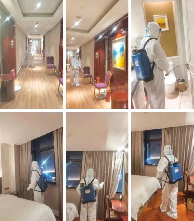 ▲酒店工作人員進(jìn)行三次徹底消殺