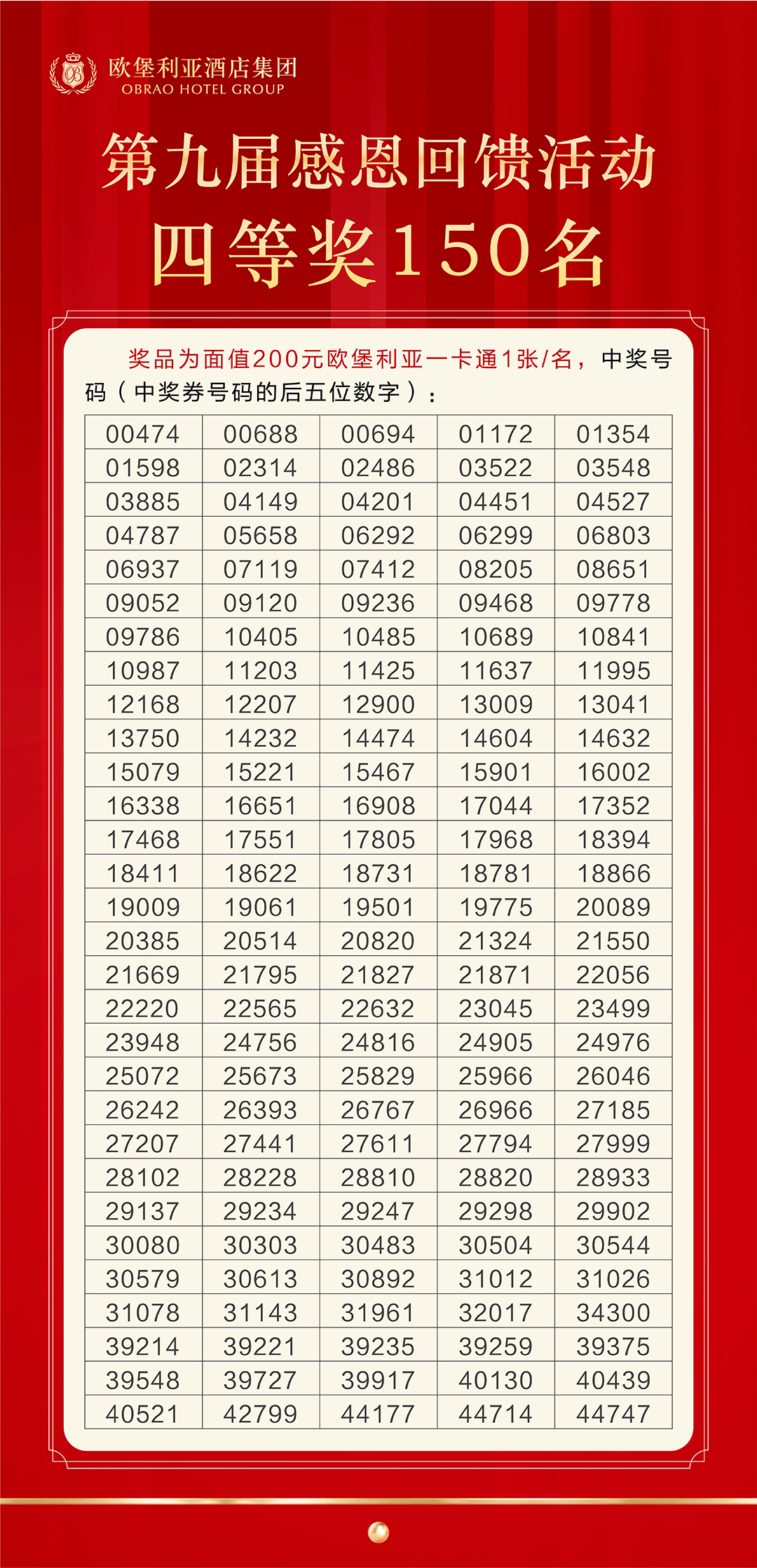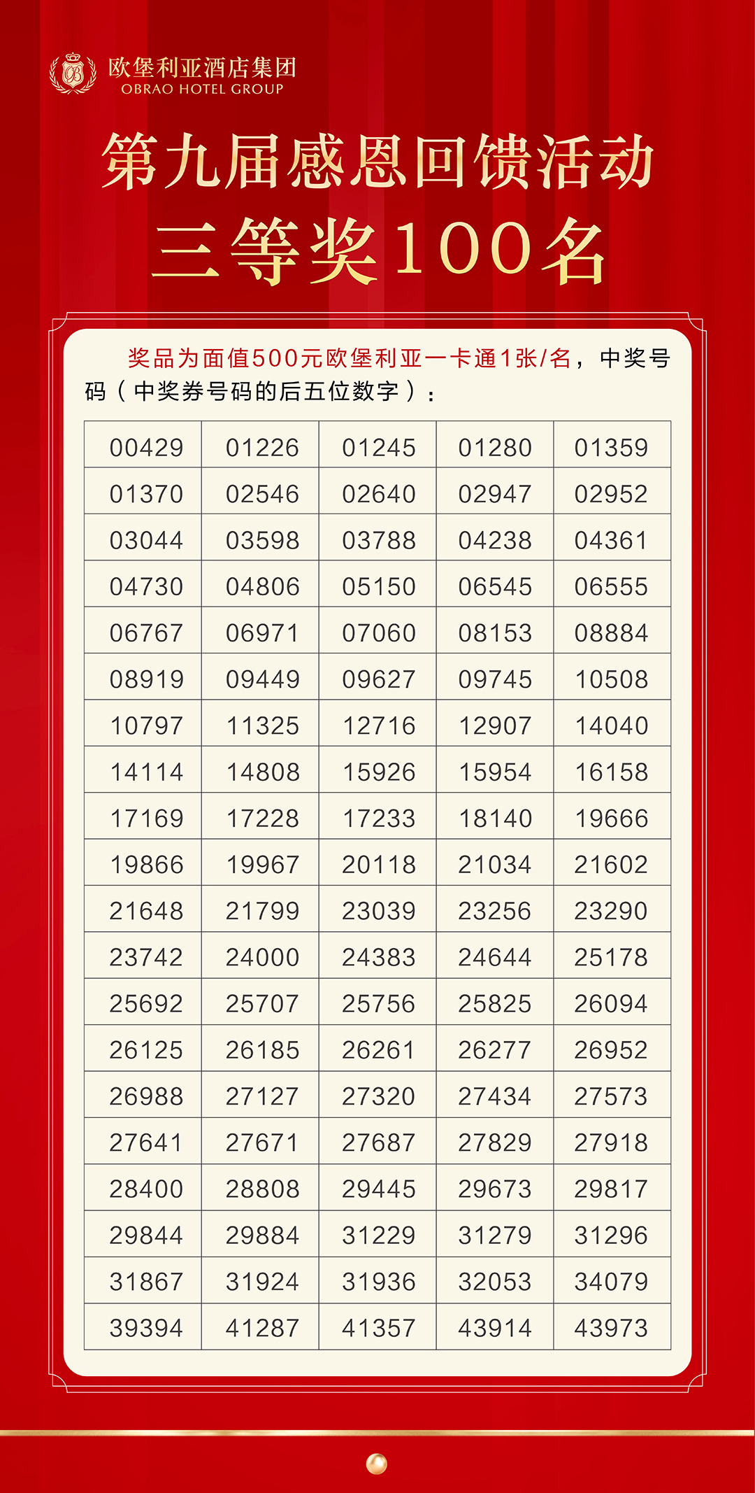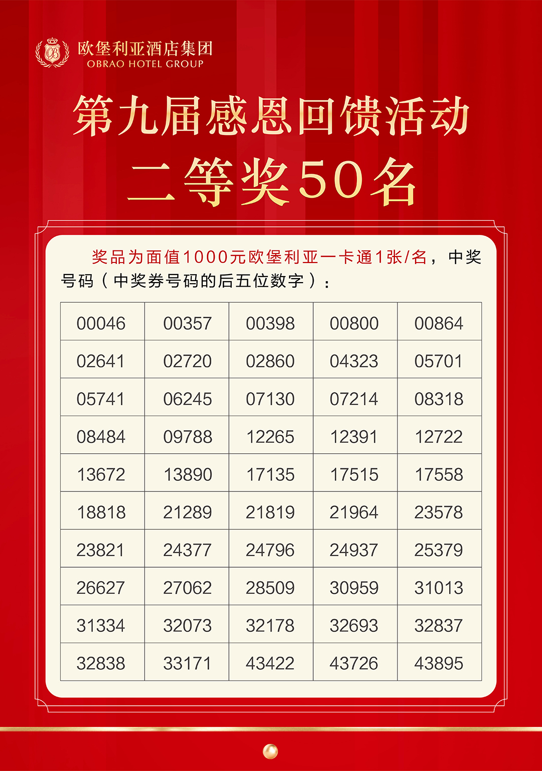 2022年6月29日,歐堡利亞酒店集團第九屆感恩回饋活動五個獎項的311個中獎號碼均已刊登在《濱海日報》上。