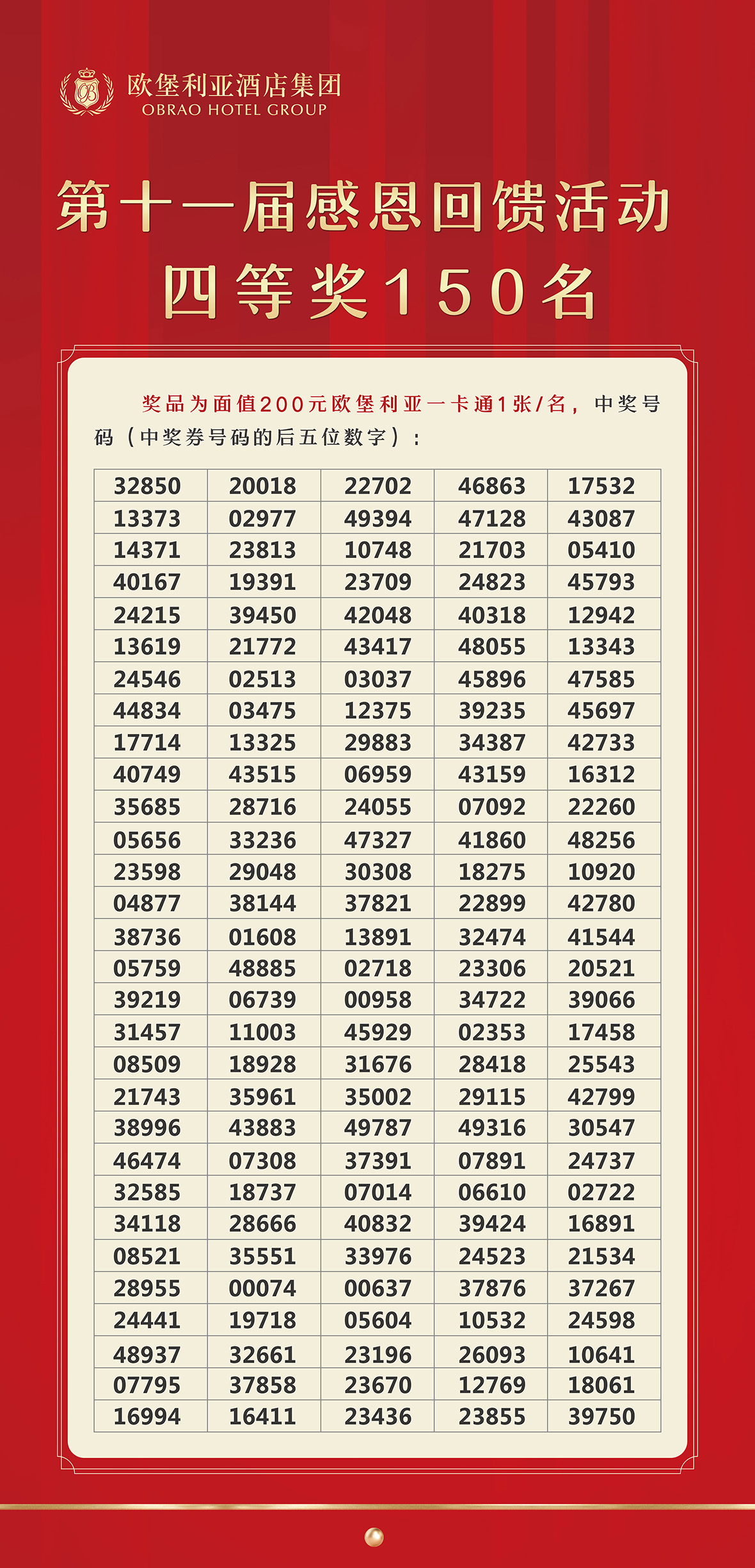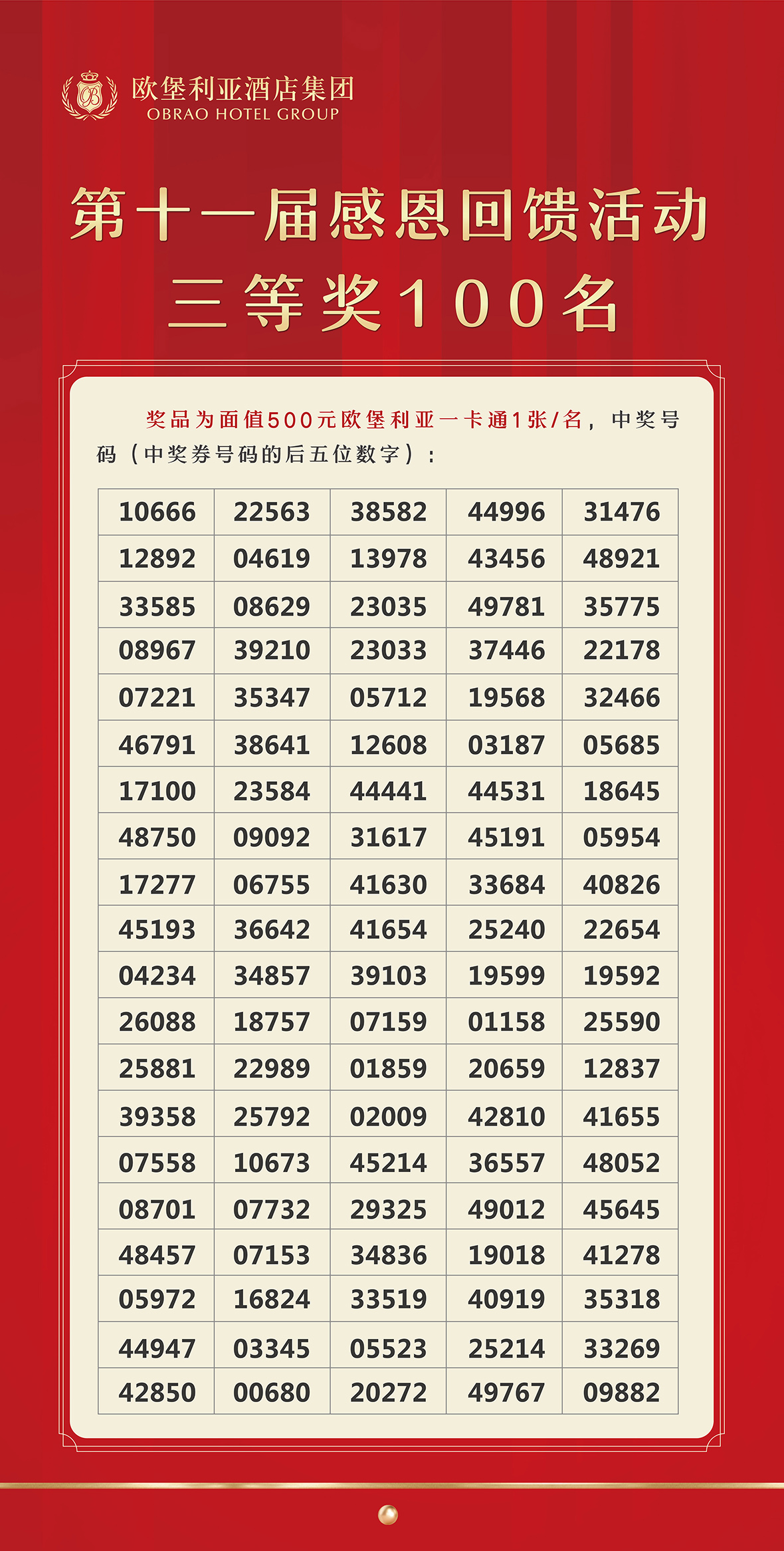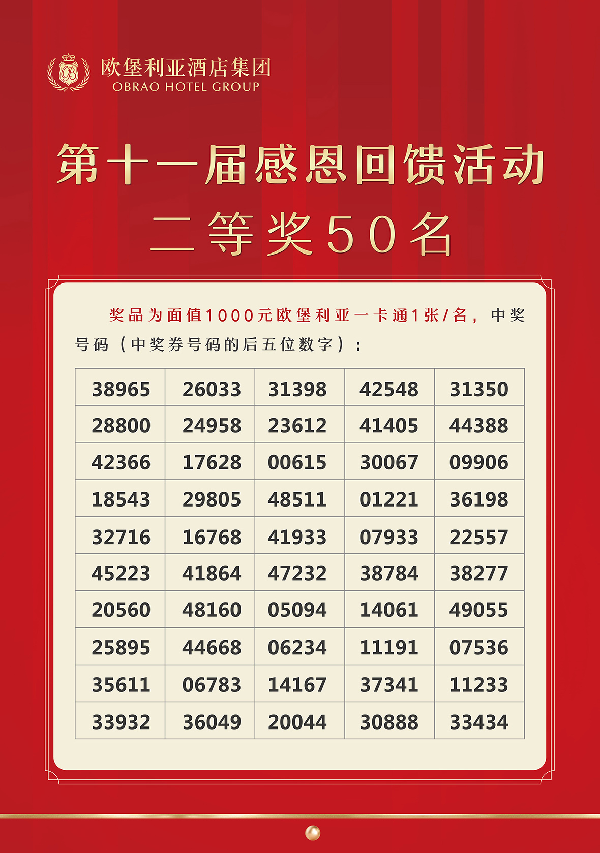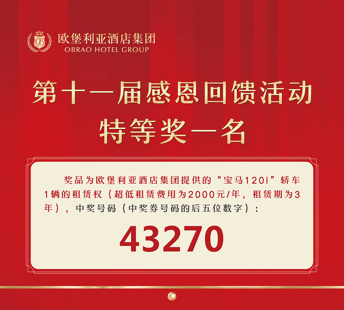 ▲歐堡利亞酒店集團第十一屆感恩回饋活動抽獎規(guī)則