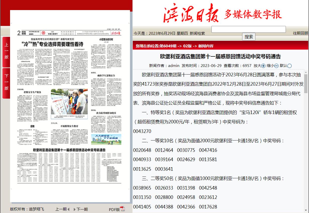 為全面、真實、有效地保證歐堡利亞酒店集團第十一屆感恩回饋活動體現(xiàn)公開、公平、公正的原則,歐堡利亞酒店集團誠邀了濱海縣消費者協(xié)會、濱海縣市場監(jiān)督管理局城南分局、濱海縣公證處的4位工作人員蒞臨整個抽獎活動的直播現(xiàn)場,在廣大觀眾朋友的在線見證下,濱海縣公證處的2位工作人員將歐堡利亞酒店集團自2022年12月28日至2023年6月27日期間對外發(fā)放的41723張抽獎劵號碼全部導(dǎo)入濱海縣公證處所提供的抽獎軟件中。