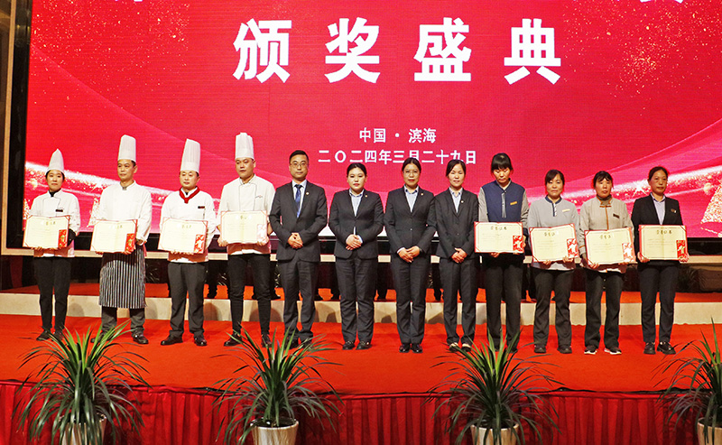 本屆崗位技能大賽的8個比賽項目評委們認真履行職責,嚴格遵循比賽項目的評分標準,實事求是、客觀公正地為每一位參賽選手評分,為本屆大賽營造了公開、透明、公平、公正的良好氛圍。為獲得“最佳組織獎”、“優秀組織獎”的4家參賽單位頒獎▲歐堡利亞宴會中心總經理夏春蘭、北辰酒店副店長朱麗麗、濱海格林東方酒店副店長王月華、濱海江南明灶代理店長楊風▲濱海格林豪泰酒店店長孫進霞、建湖格林東方酒店店長張華、▲歐堡利亞格林豪泰酒店店長周蘭婷、建湖江南明灶店長謝晨、建湖格菲酒店副店長吳鳳蘭為獲得“銅牌技術能手”的6位參賽選手頒獎學業務練本領強素質,爭當技術能手;靠技能賽水平展風采,賡續工匠精神。經過緊張激烈的角逐比拼后,134位參賽選手中有51人獲得了8個參賽項目的“銅牌技術能手”、“銀牌技術能手”、“金牌技術能手”的榮譽稱號,歐堡利亞大酒店摘取了“最佳組織獎”,歐堡利亞宴會中心、歐堡利亞北辰酒店、歐堡利亞建湖江南明灶均榮膺了“優秀組織獎”,并在歡快、喜悅的音樂中舉行了現場頒獎儀式。