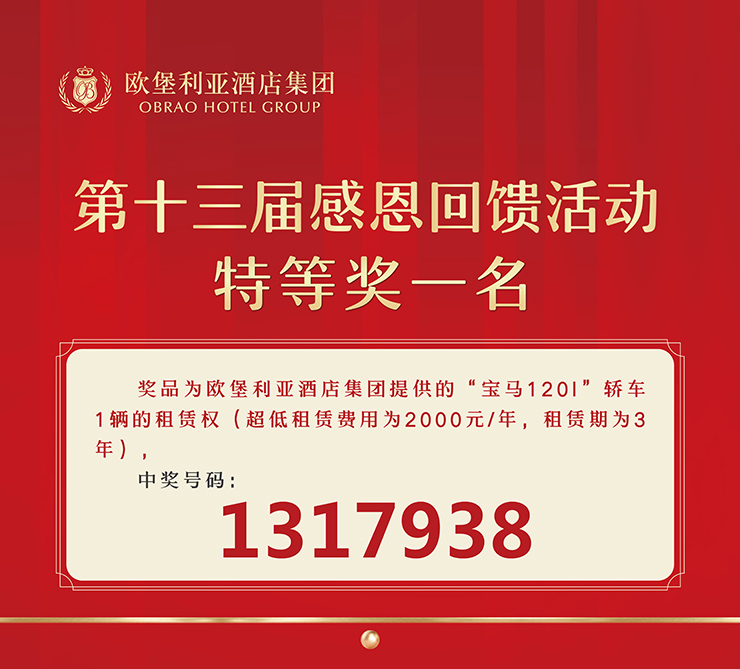 【用真心感恩一路相隨 憑行動回饋無限信任】—熱烈祝賀“歐堡利亞酒店集團第十三屆感恩回饋活動”取得圓滿成功