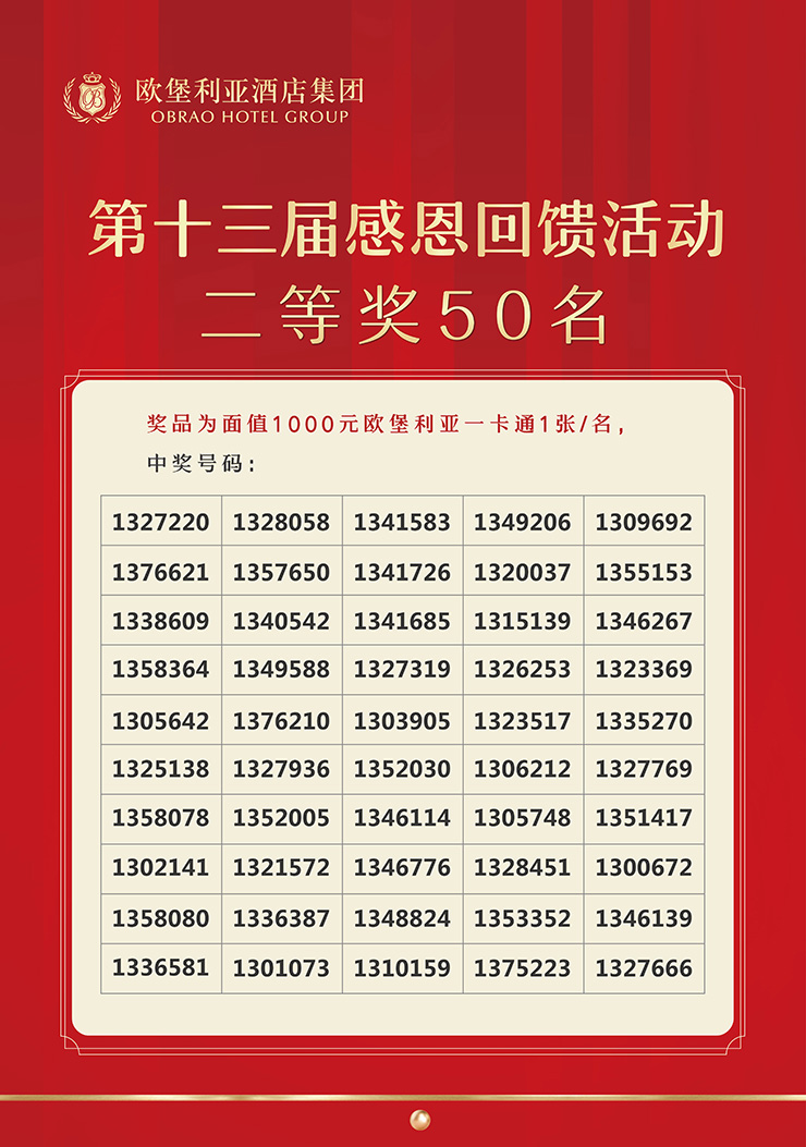 ▲歐堡利亞酒店集團第十三屆感恩回饋活動抽獎規則