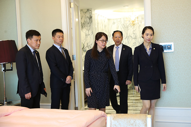 為使歐堡利亞大酒店再次順利通過國家五星級飯店評定性復核驗收,切實加快五星級飯店評定性復核工作的進程,2024年7月2日,江蘇省文旅廳二級調研員黃樺對歐堡利亞大酒店的五星級飯店評定性復核準備工作作了精心指導,歐堡利亞酒店集團總經理、歐堡利亞大酒店董事長鄧棟、歐堡利亞大酒店總經理胡也華及相關同志陪同檢查。