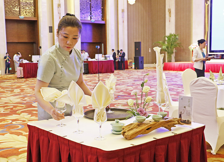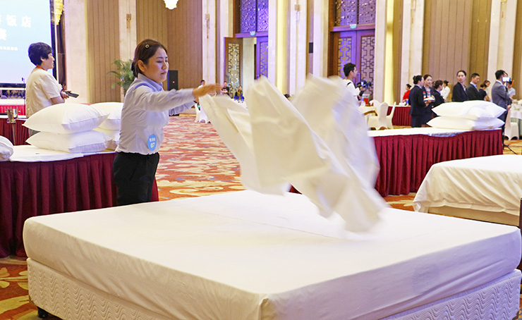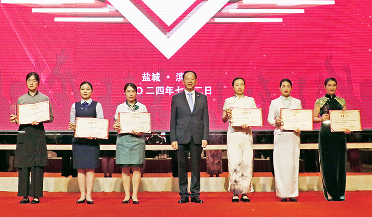 為榮獲“優秀組織獎”的6個縣(市、區)代表隊領隊頒獎一分耕耘一分收獲,成功青睞有準備者。經過緊張激烈的角逐比拼后,各縣(市、區)代表隊競賽決出了6個“優秀組織獎”,74名參賽選手中有24人分別獲得了四個競賽項目的“一等獎”、“二等獎”、“三等獎”,其中歐堡利亞大酒店陳俊、辛可可、王珊珊、錢海燕、沈玉靜分別獲得了“客房服務一等獎”、“前廳服務二等獎”、“西餐服務二等獎”、“客房服務三等獎”、“前廳服務三等獎”,歐堡利亞北辰酒店王夢蝶、張麗麗、周竹蘭分別獲得了“前廳服務二等獎”、“前廳服務三等獎”、“客房服務三等獎”,充分展示了歐堡利亞酒店人愛崗敬業的精神風貌和嫻熟精湛的服務技能。星級旅游飯店是展示一個城市旅游服務的重要一環,決定著一個城市服務質量的好壞,從業人員的職業素養是展示星級旅游飯店形象的最有力代言。2024鹽城星級旅游飯店服務技能選拔賽歷時570分鐘,既是鹽城市文廣旅局對全市星級旅游飯店服務技能人才隊伍水平的一次大檢閱,又是引導鹽城市星級旅游飯店從業人員學知識、學技術、練技能、強服務的一次大動員,這不僅為鹽城市星級旅游飯店從業人員構建了各顯神通、展示風采、交流互鑒、鍛煉提升的良好平臺,還增強了鹽城市星級旅游飯店從業人員的技能水平、服務質量,更推動了鹽城市文化旅游事業和飯店產業高質量發展。