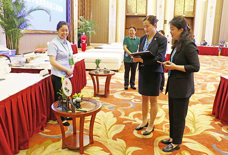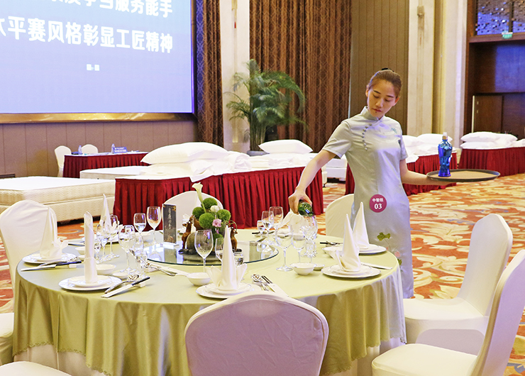 此次選拔賽設前廳服務、客房服務、中餐服務、西餐服務四個競賽項目,均分為理論考試、技能操作兩項考核,理論考試內容涉及了近期國內時事政治、飯店服務專業知識,所有參賽選手均須參加45分鐘內完成80道單選題及多選題的理論考試;技能操作要從行業規范知識、服務操作技能、英語口語表達、語言溝通協調、突發事件應對等方面,著重對前廳服務(儀容儀表、入住登記、結賬服務、用英語介紹飯店及旅游文化資源信息、用英語回答前廳服務知識)、客房服務(儀容儀表、準備工作車、鋪床、VIP禮遇小品設計)、中餐服務(儀容儀表、中餐宴會擺臺、主題餐巾折花設計與布置、著名菜品推介)、西餐服務(儀容儀表、西餐宴會擺臺、西餐宴會服務、用英語回答西餐服務知識)等內容加以考查。