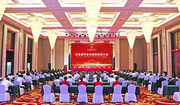 14時,歐堡利亞大酒店五星級評定性復核動員大會揭開了序幕,歐堡利亞酒店集團總經理兼歐堡利亞大酒店董事長鄧棟作了熱情洋溢的動員報告。鄧總在動員報告中著重指出:今年以來,在市縣文廣旅局的精心指導、戴春明董事長的親切關懷下,歐堡利亞大酒店為迎接五星復核做了大量的基礎性工作,投入近500萬元對硬件設施進行了更新改造和維修保養,全面提升了服務檔次,切實增強了競爭實力;今年7月2日,省文旅廳行管處處長黃樺親臨歐堡利亞大酒店并指導了五星復核工作,充分肯定了歐堡利亞大酒店全員上下在五星復核工作準備過程中所取得的成績,這為歐堡利亞大酒店順利開展五星復核工作提振了信心、奠定了基礎。