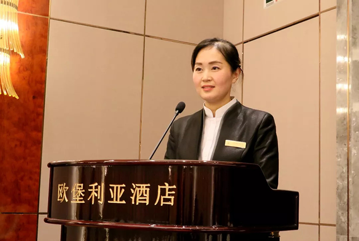 ▲歐堡利亞北辰酒店餐飲部副經理龔蓮蓮表態發言