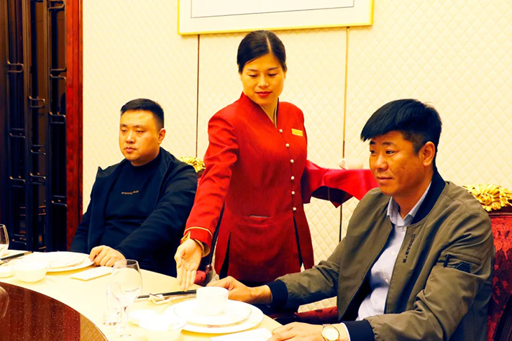 培訓過程中,龔經理用真實生動的服務案例,拋磚引玉地說明使用托盤可收到事半功倍之效;用圖文并茂的精彩PPT,深入淺出地講解了托盤的基礎知識、操作技能、注意事項;用標準規范的現場示范,耐心細致地糾正了參培人員在實操練習中存在動作不到位、不規范的現象。所有參培人員學習熱情十分高漲,了解了托盤的種類及用途,在龔經理手把手的教授下分組演練,從站姿、手勢等基本動作學起,每一個細節都有標準規范和嚴格要求,大家掌握了托盤的操作程序及動作要領,收到了熟練操作、運用自如的培訓效果,真實的理論加實踐使餐飲服務員都深感受益匪淺。