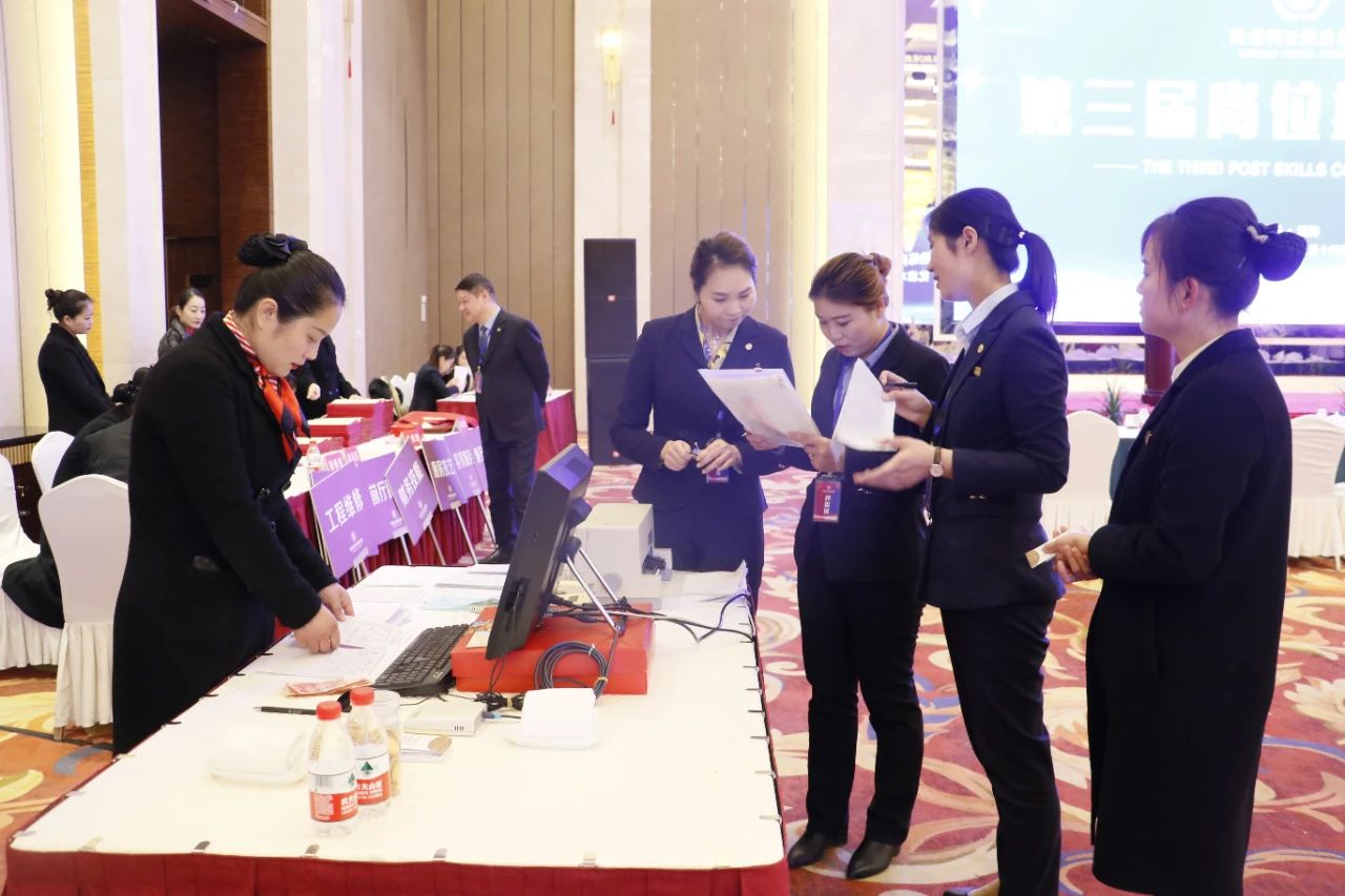 第三屆崗位技能大賽設有客房服務、餐廳服務、前廳服務、熱菜制作、冷菜制作、面點制作、精細刀工、圍邊裝飾、保安實操、工程維修、財務技能共計11個賽項,經過參賽部門、參賽單位的強化培訓和層層選拔,參賽選手充分利用8小時之外的業余時間,盡管日常工作后有著些許勞累,卻依然毫無怨言地苦練技能、奮力備戰。在主持人宣布第三屆崗位技能大賽開始后,身穿職業裝、佩戴評委證的大賽評委偕同身著工作裝、別著參賽號牌的參賽選手,精神飽滿、信心百倍地邁著整齊有力的步伐向各比賽區挺進。