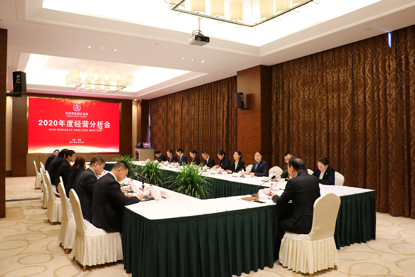 揖別極不平凡的2020年,迎來充滿希望的2021年。2021年1月7日,歐堡利亞酒店集團在歐堡利亞大酒店召開了2020年度經營分析會,旨在認真總結2020年的工作得失,科學把握疫情防控常態化下的發展形勢,共同擘畫2021年的發展藍圖,歐堡利亞酒店集團鄧棟總經理出席并主持了會議,酒店集團本部5個部門、下屬10家酒店及1家商管公司的主要負責同志參加了此次會議。