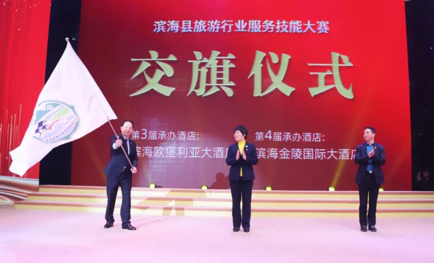 自2018年7月19日迄今為止,濱海縣旅游行業(yè)服務(wù)技能大賽已舉辦三屆,為賡續(xù)提升全縣旅游行業(yè)廣大員工服務(wù)技能和服務(wù)水平,全面加快推進(jìn)濱海縣旅游飯店行業(yè)高技能人才隊(duì)伍建設(shè),歐堡利亞酒店集團(tuán)總經(jīng)理鄧棟在頒獎(jiǎng)儀式上將大賽會(huì)旗傳遞給濱海金陵國(guó)際大酒店副總經(jīng)理李玉海,這標(biāo)志著由歐堡利亞酒店集團(tuán)承辦的濱海縣第三屆旅游行業(yè)服務(wù)技能大賽圓滿落幕,濱海縣第四屆旅游行業(yè)服務(wù)技能大賽將由濱海金陵國(guó)際大酒店承辦。